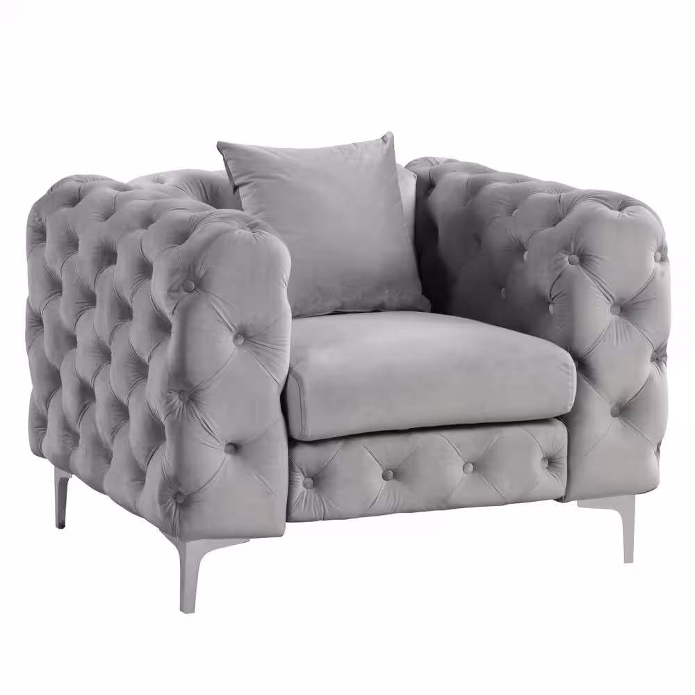 Morden Fort Silver Grey Modern Contemporary Accent Chair with Deep Button Tufting Dutch Velvet, Solid Wood Frame and Iron Legs