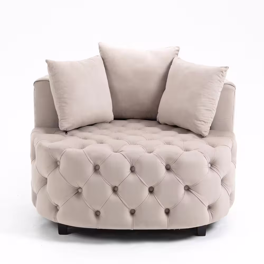 None Modern Beige Velvet Leisure Classical Barrel Chair with Wooden Legs