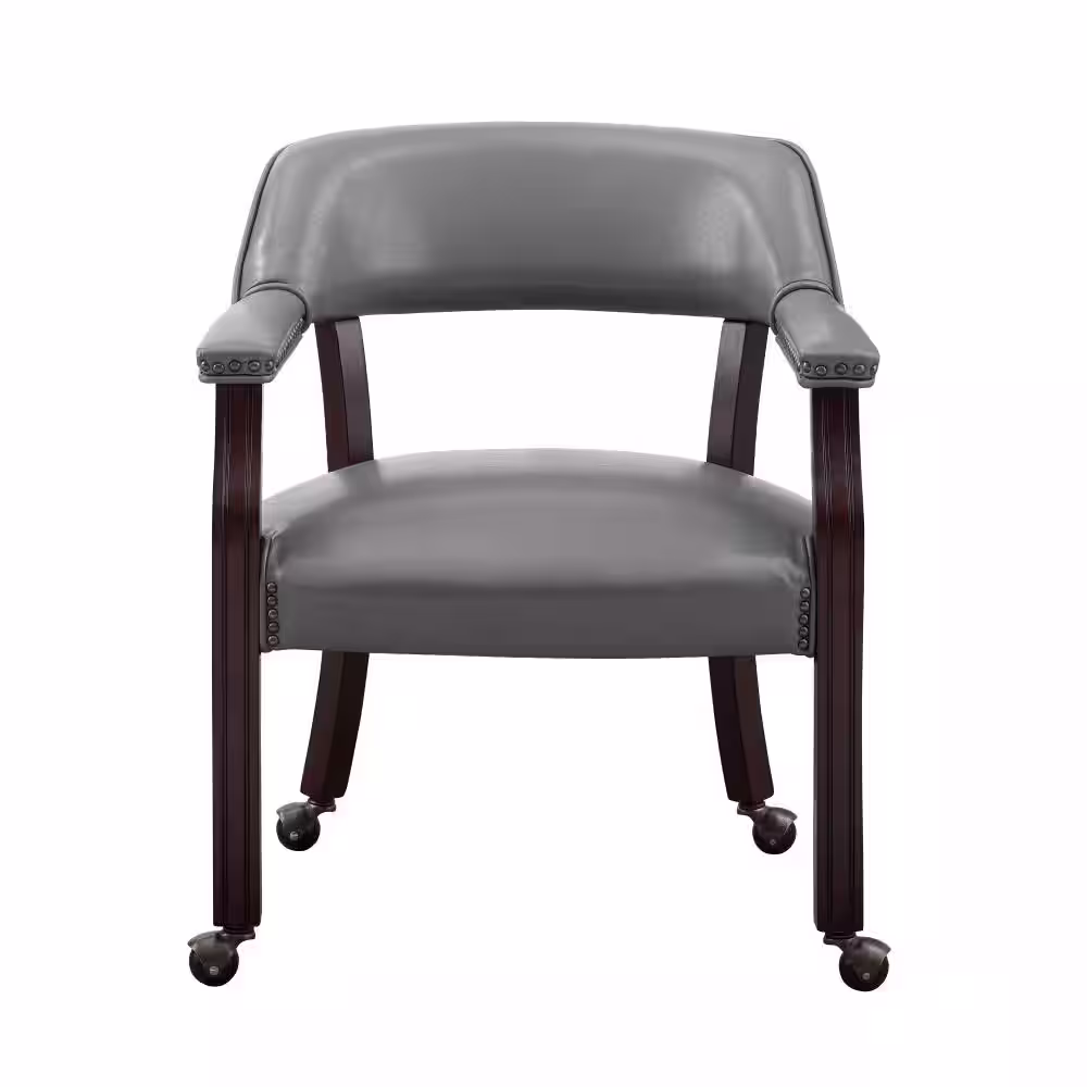 Steve Silver Tournament Gray Vinyl Upholstery Casters Arm Chair