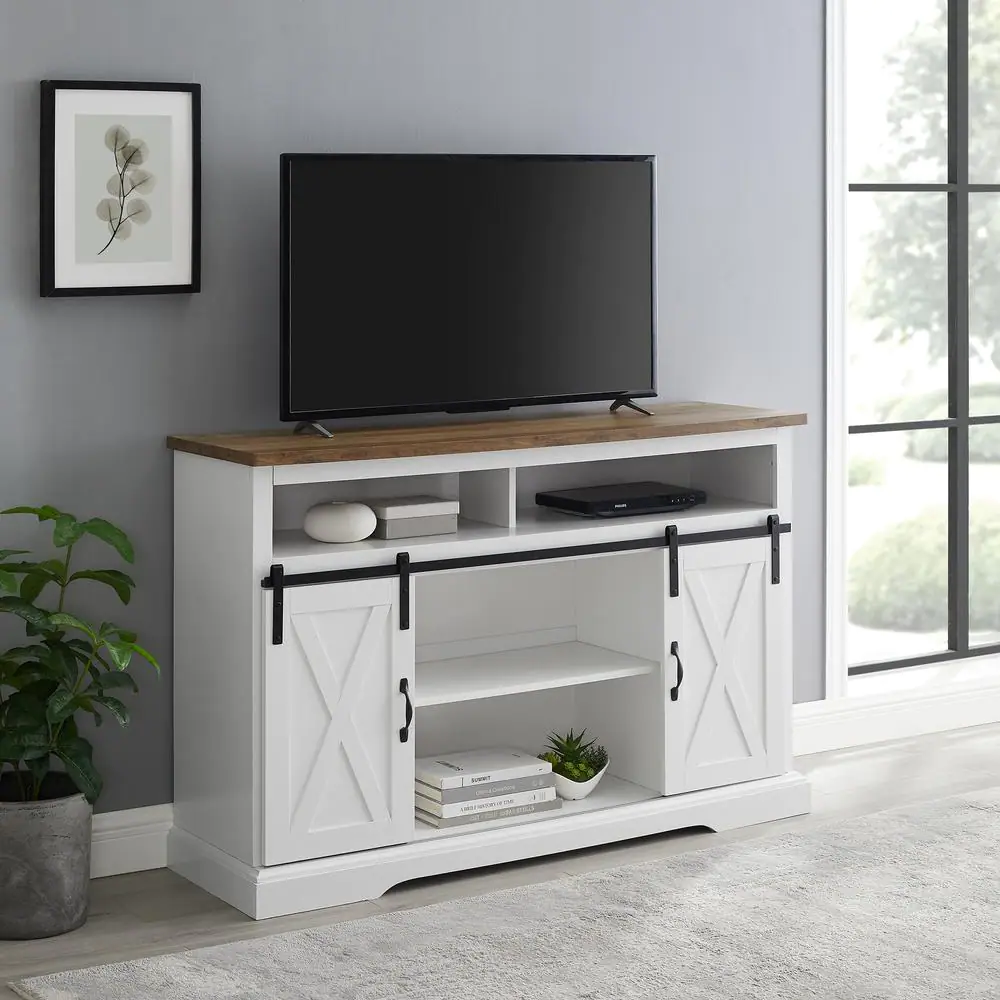 Walker Edison Furniture Company 52 in. White Reclaimed Barnwood TV Stand with storage Doors (Max tv size 58 in.)