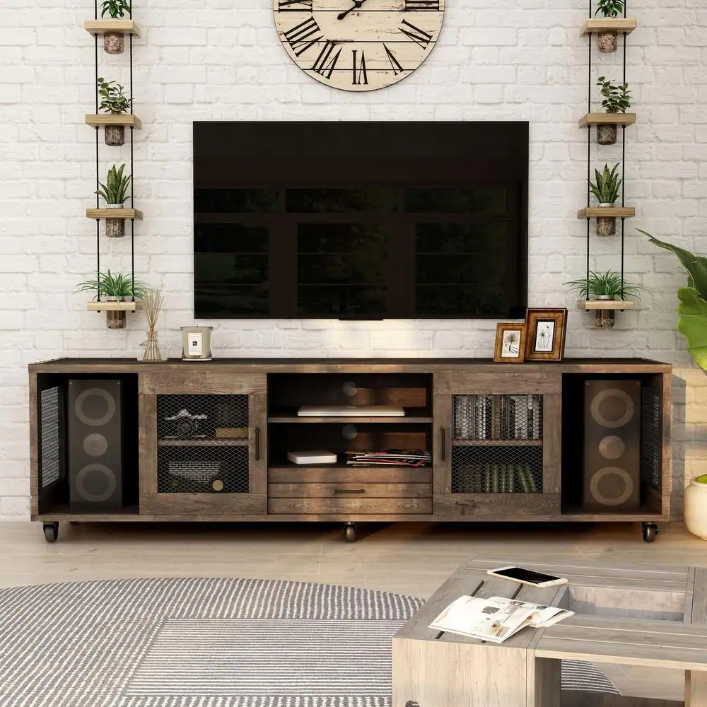 Furniture of America Coopern 71 in. Reclaimed Oak TV Stand Fits TVs Up to 80 in. with Storage