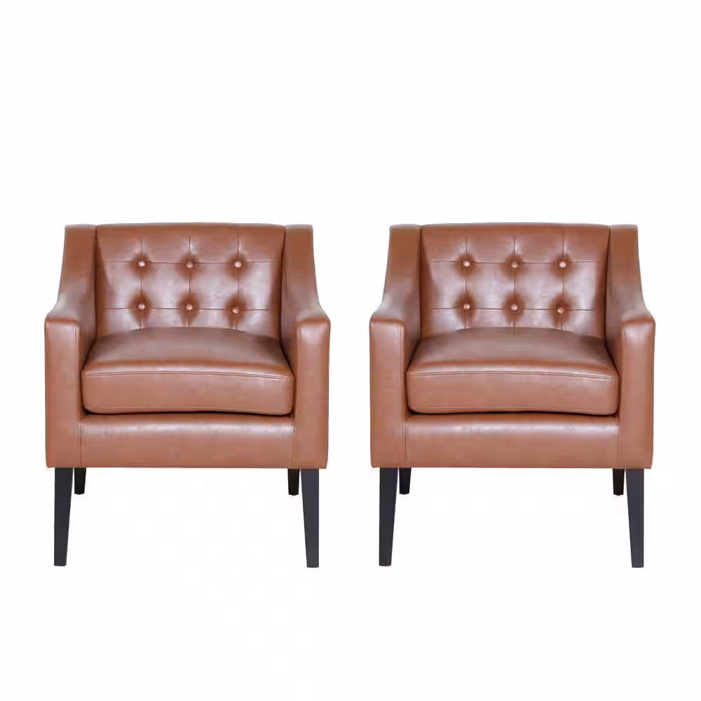 Noble House Annisa Cognac Brown and Espresso Faux Leather Tufted Accent Chair (Set of 2)