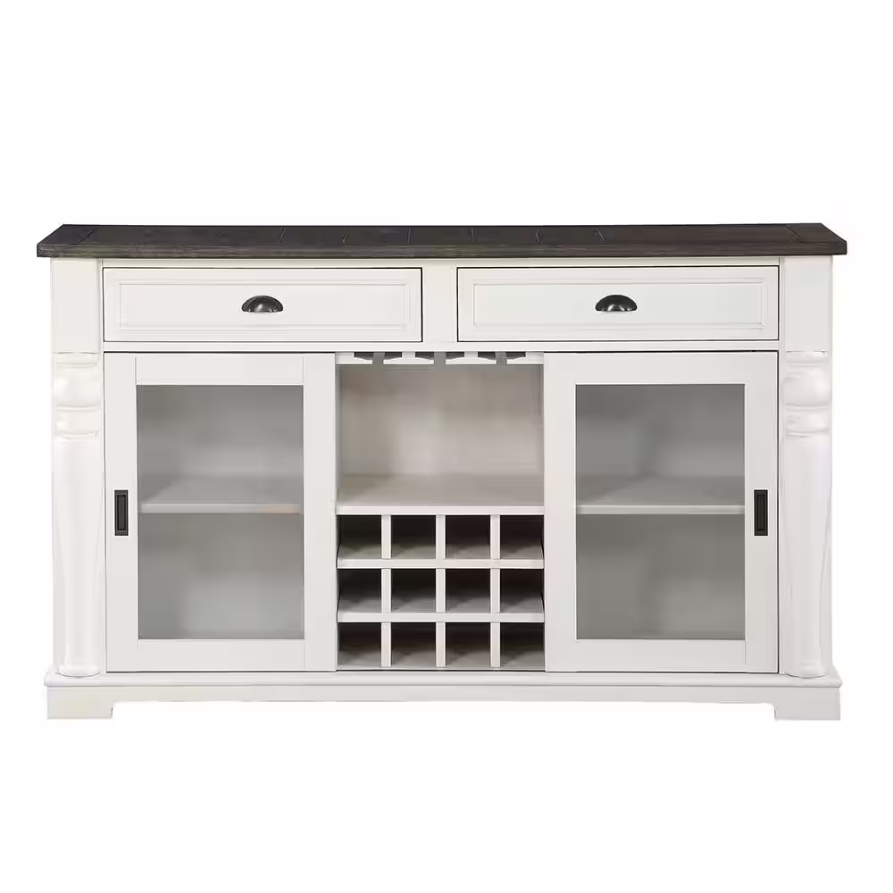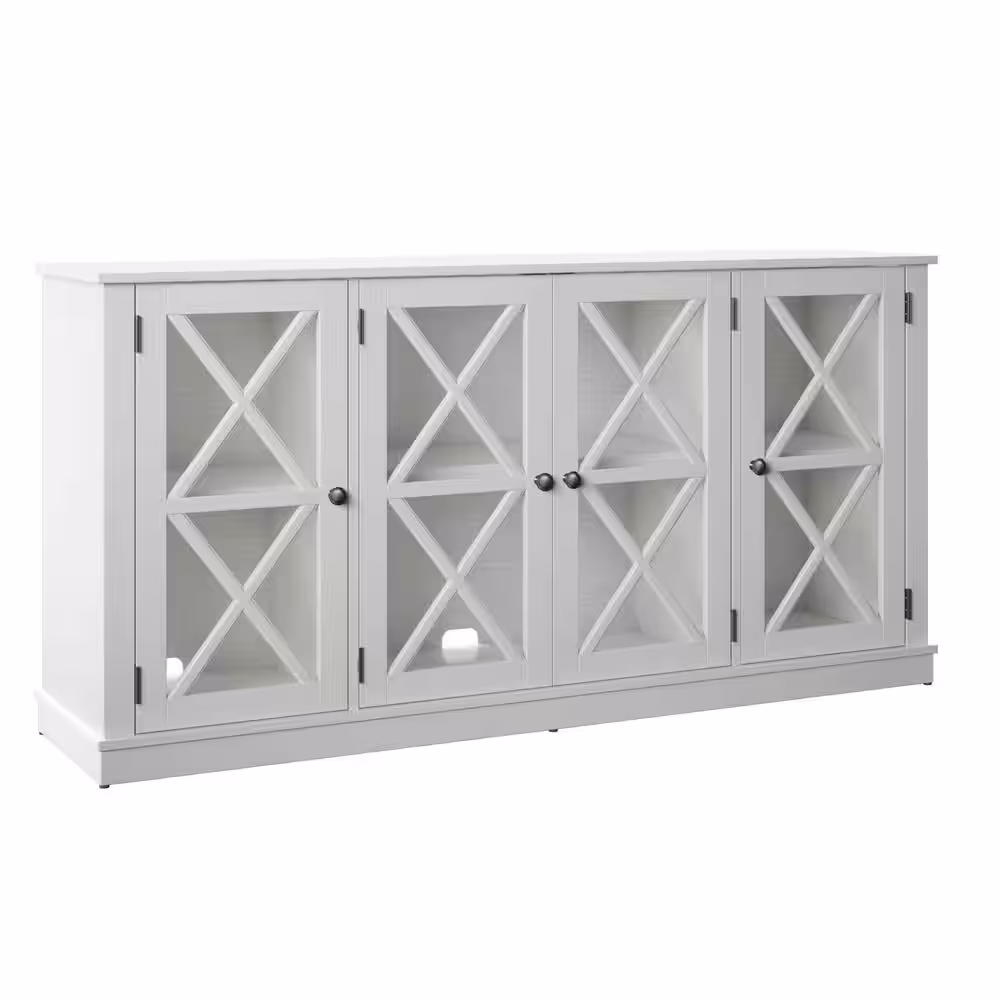 Twin Star Home White 64 in. Sideboard with Tempered Glass Doors