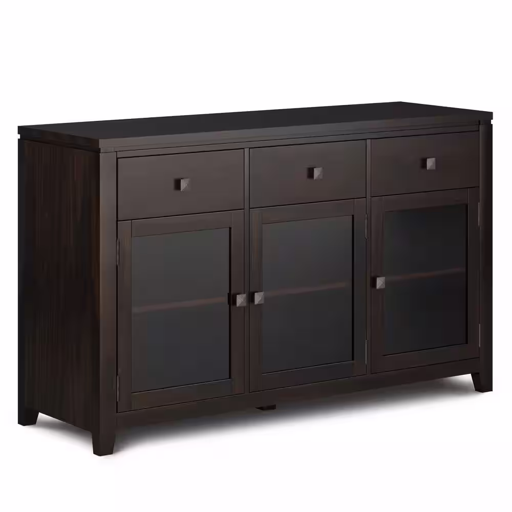 Simpli Home Cosmopolitan Solid Wood 54 in. Wide Contemporary Sideboard Buffet in MahoganyTempered Glass