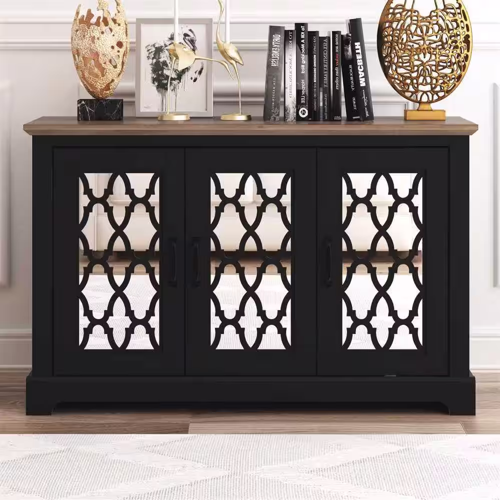 GALANO Heron 45.8 in. Composite Top Black with Knotty Oak 3-Door Wide Sideboard