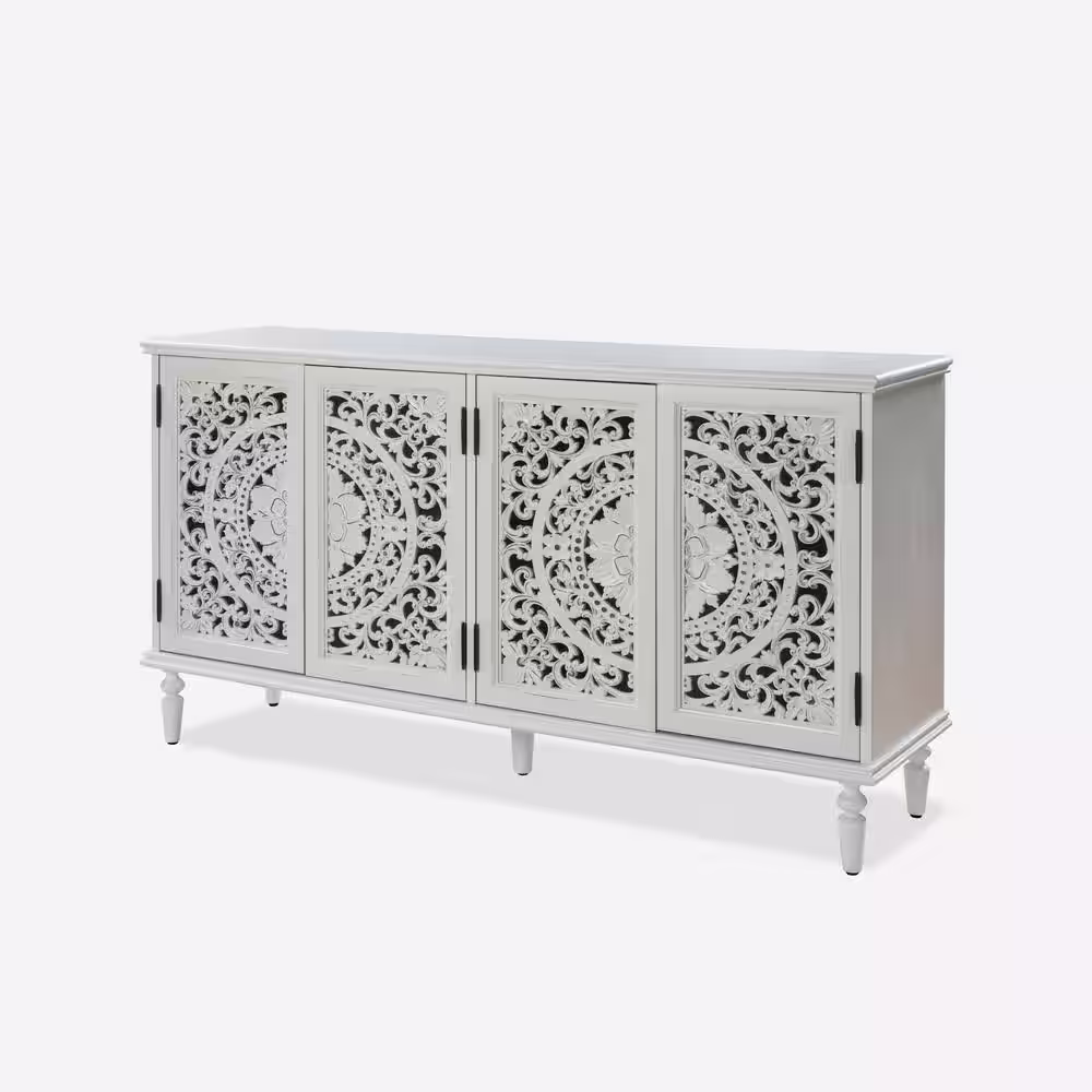 JAYDEN CREATION Herculaneum White Traditional Wooden 63 in. Wide Sideboard with 4-Doors and Adjustable Shelves