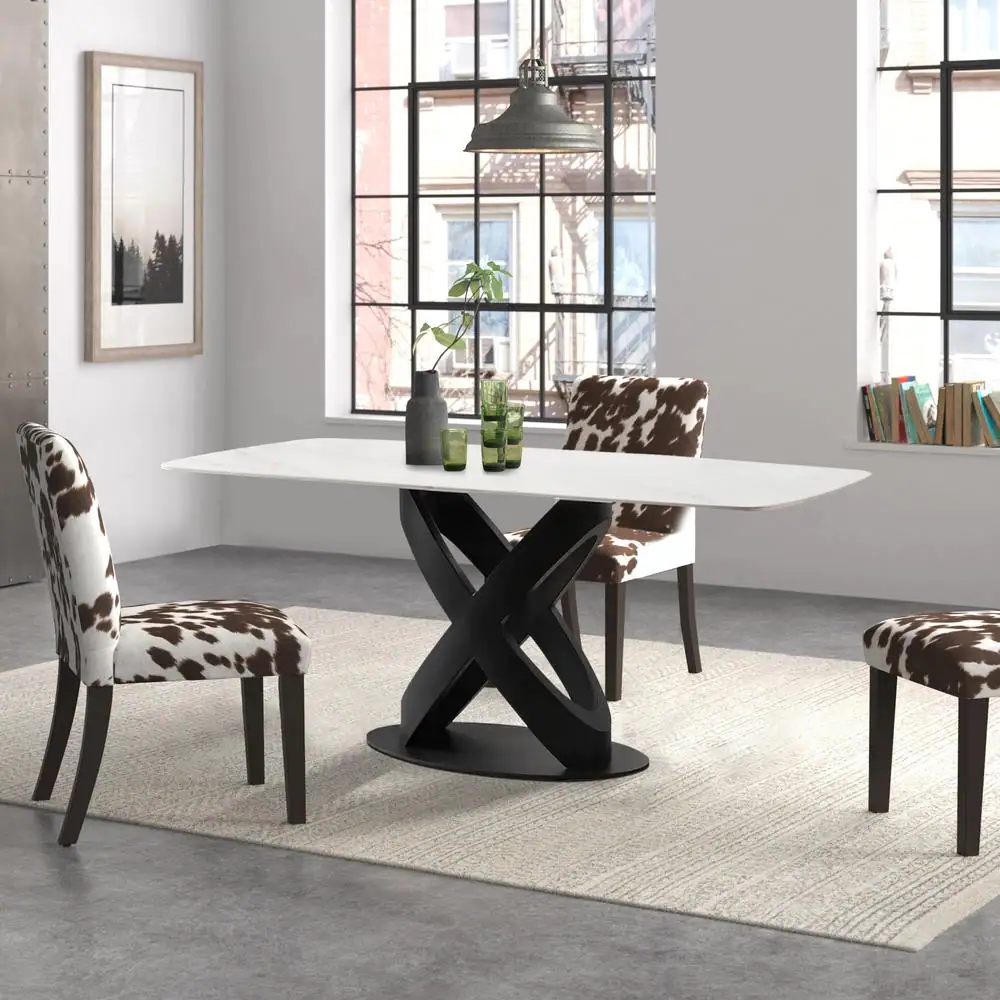None 71 in. Rectangular Luxury Modern White Stone Dining Table with Solid Black Carbon Steel Base for Dining Room (Seats 8)