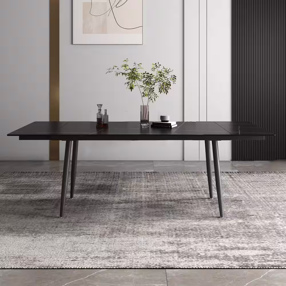 THE RIGHT PATH 62.9'' to 94.4'' Black Stone Extendable Dining Table