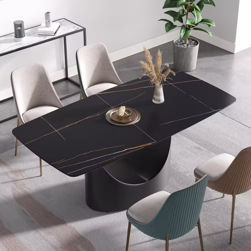 J&E Home 70.86 in. Black Rectangle Sintered Stone Tabletop Dining Table with Carbon Steel (Seats 6)
