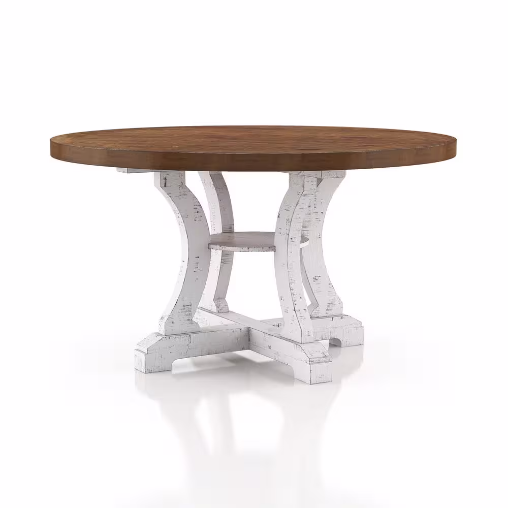 Furniture of America Wicks 54 in. Distressed White and Dark Oak Wood Round Dining Table