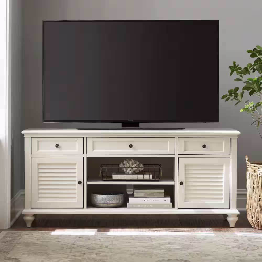 None 68 in. White TV Stand for TVs Up to 70 in.
