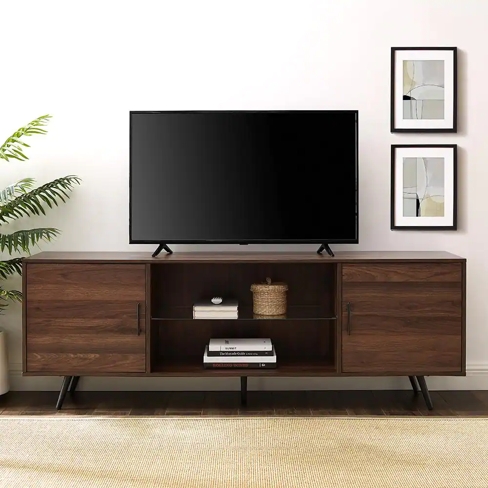 Walker Edison Furniture Company 70 in. Dark Walnut Composite TV Stand 75 in. with Doors