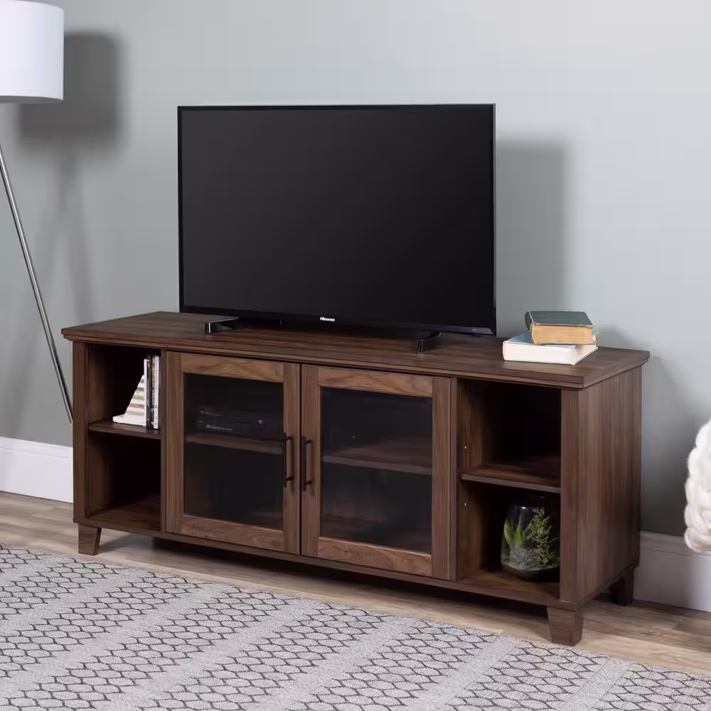 Walker Edison Furniture Company 58 in. Dark Walnut Composite TV Stand 65 in. with Doors