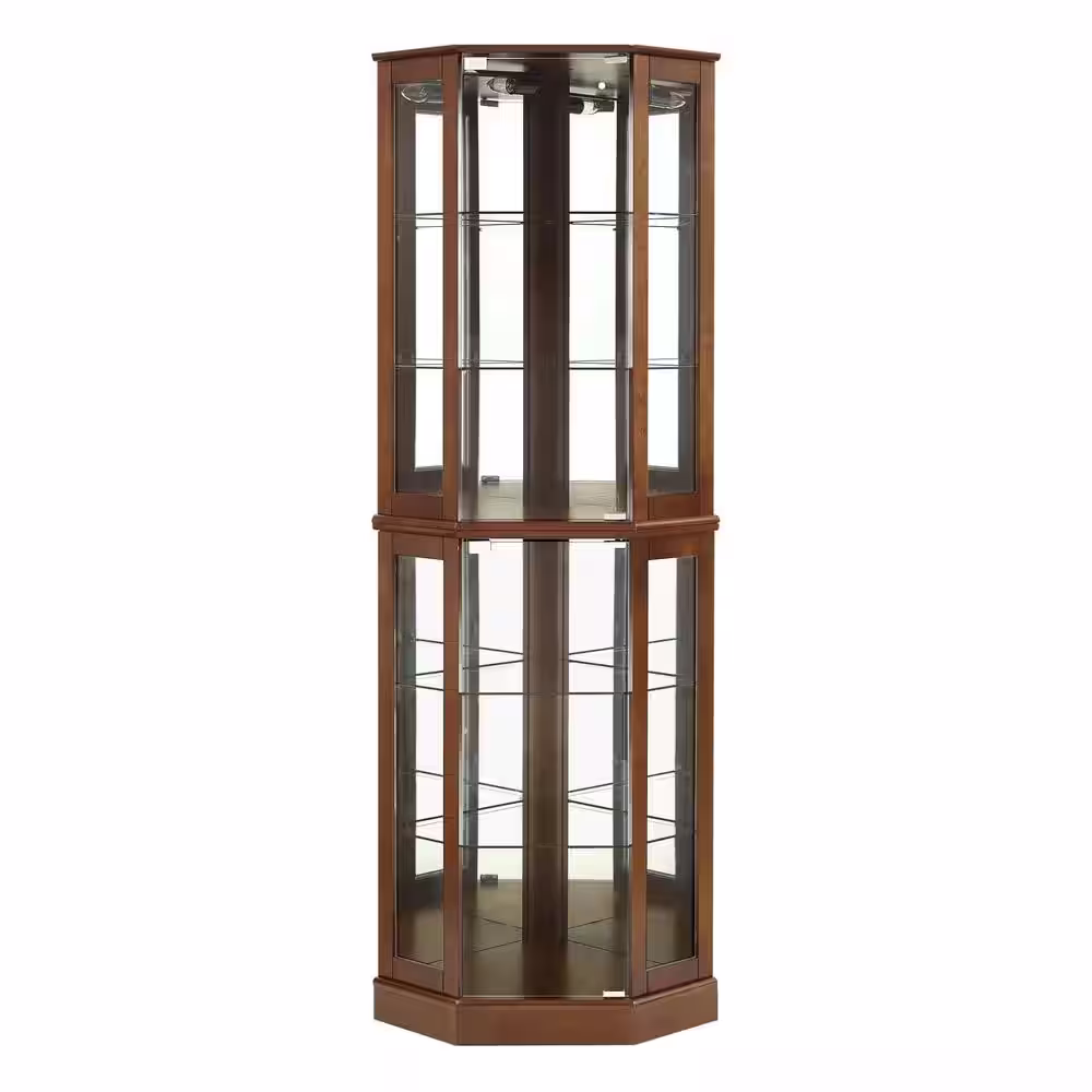 None Walnut 26 in. Width Display Cabinet Lighted Corner China Cabinet