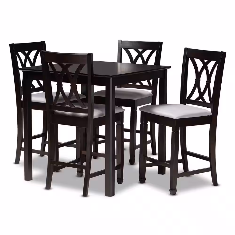 Baxton Studio Reneau 5-Piece Gray and Espresso Pub Set