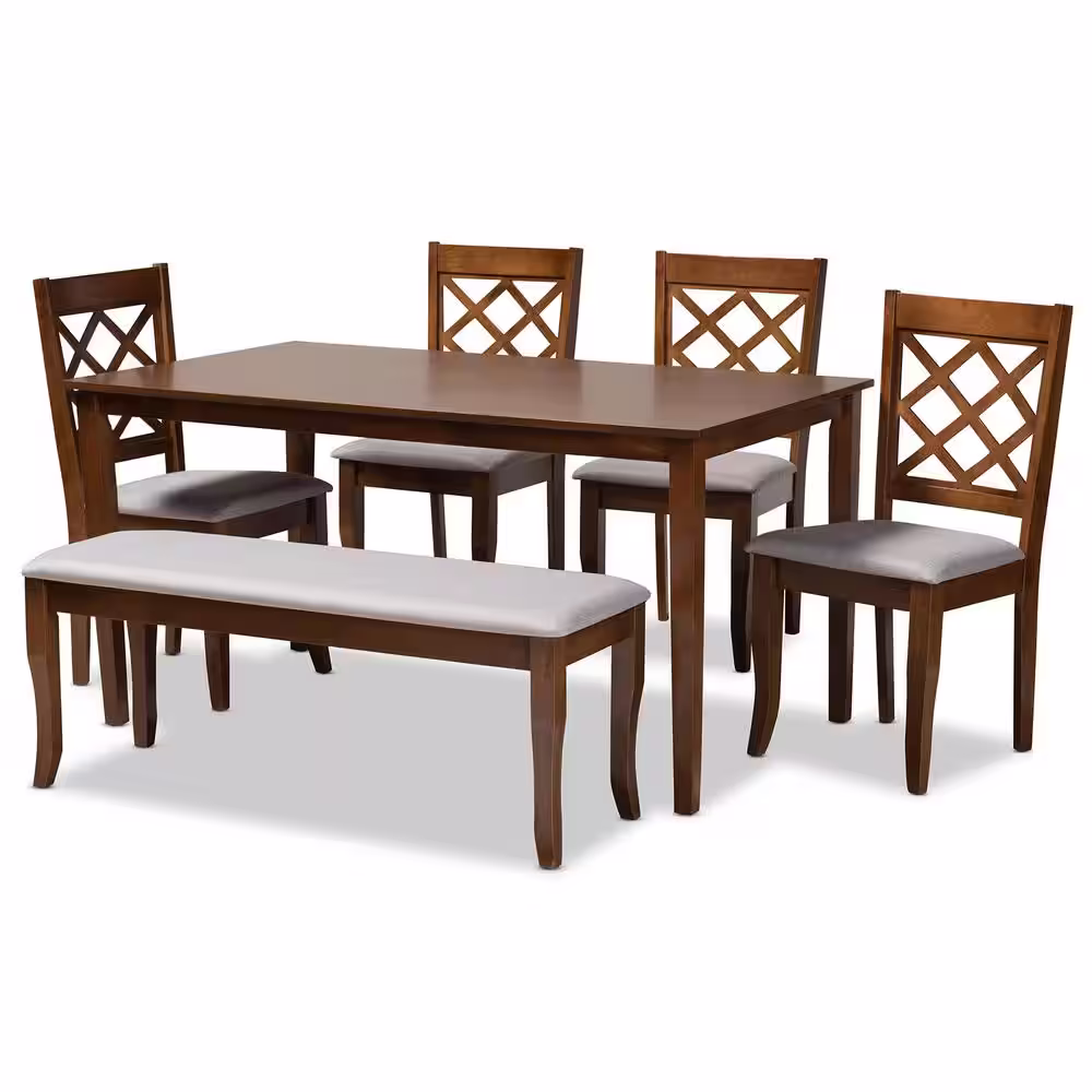 Baxton Studio andor 6-Piece Grey and Walnut Dining Set