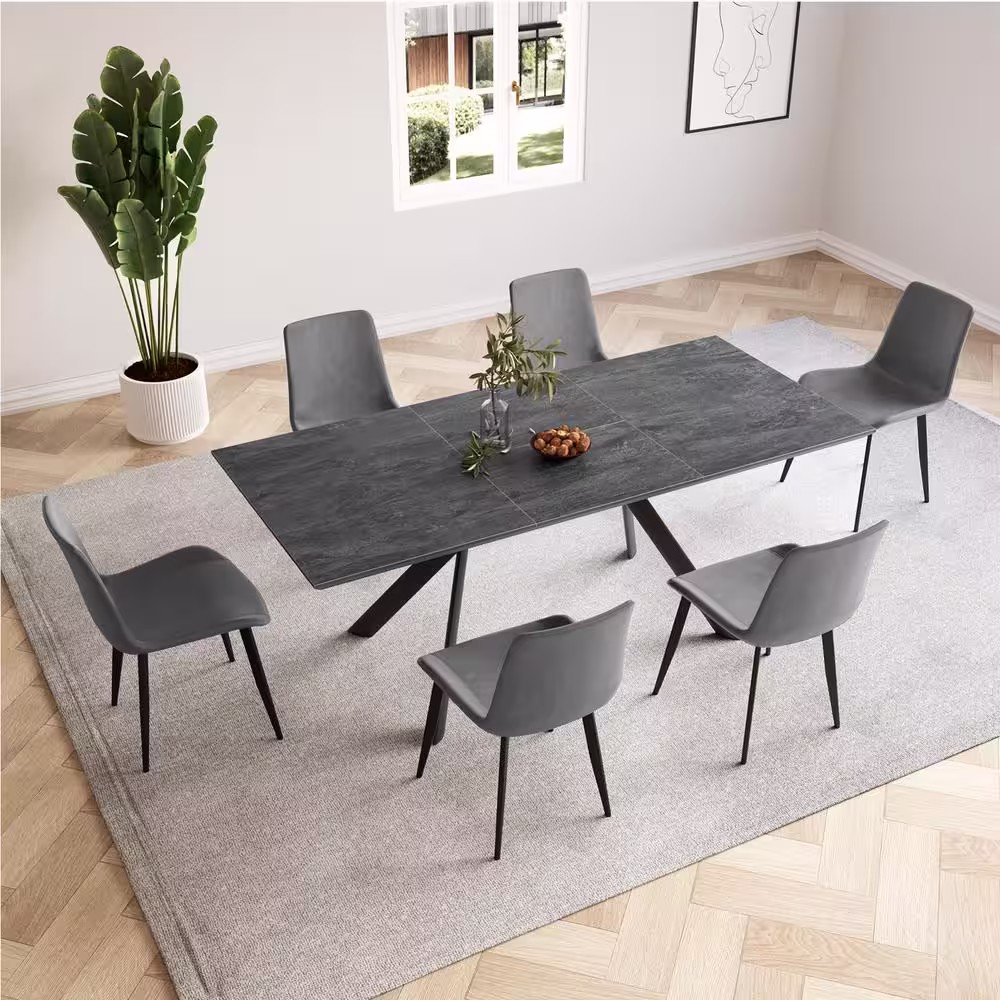 None 7-Piece Grey Chairs and Gray MDF Wooden Extendable Dining Table, Dining Table Set with 6 PU Chairs for Dining Room