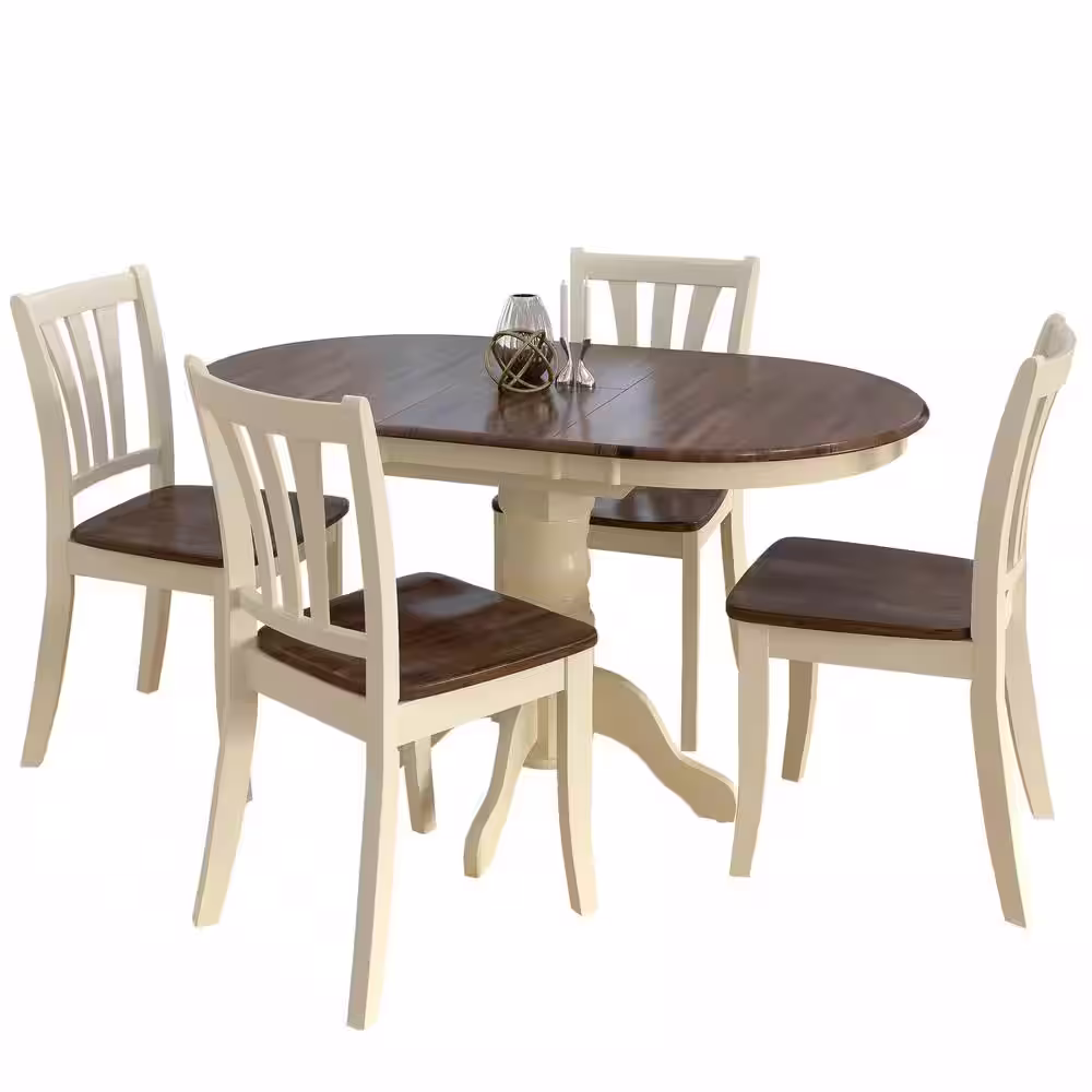 CORLIVING Dillon 5-Piece Extendable Dark Brown and Cream Solid Wood Dining Set