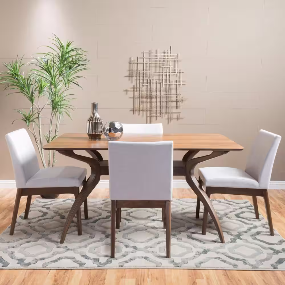 Noble House Kwame 5-Piece Light Beige and Natural Walnut Dining Set