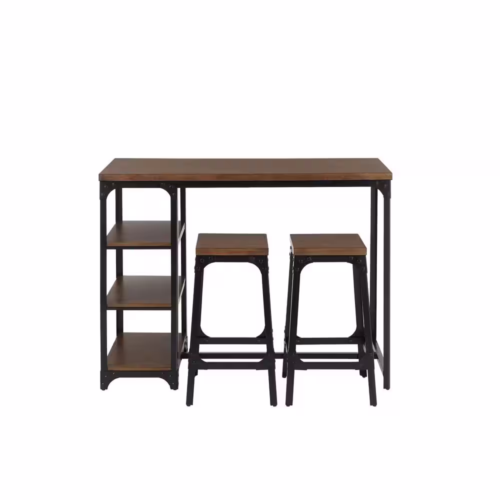 StyleWell Black Metal 3 Piece Dining Set with Haze Oak Finish Wood Top