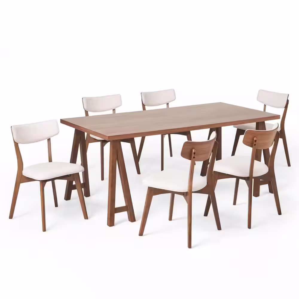 Noble House Chazz 7-Piece Rectangle Wood Top Light Beige and Walnut Standard Height Table Set