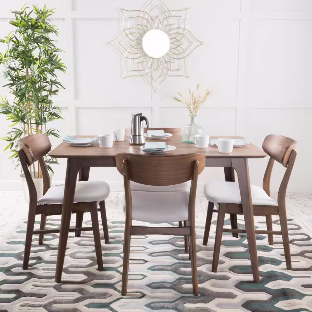 Noble House Lucious 5-Piece Light Beige and Natural Walnut Dining Set