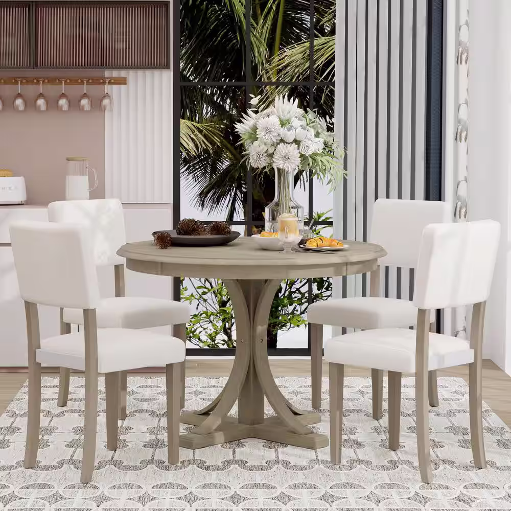 Harper & Bright Designs 5-Piece Taupe Retro Round MDF Top Table Set with 4 Upholstered Chairs