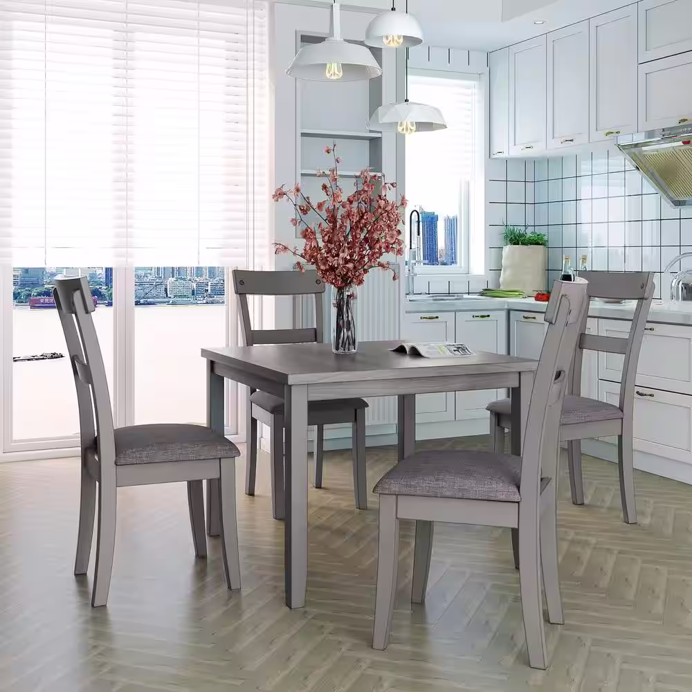 Harper & Bright Designs Light Gray 5-Piece Industrial Wooden Dining Sets