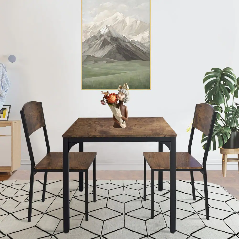None 3-Piece Metal and Wooden Dining Table Set with 2 Side Chairs