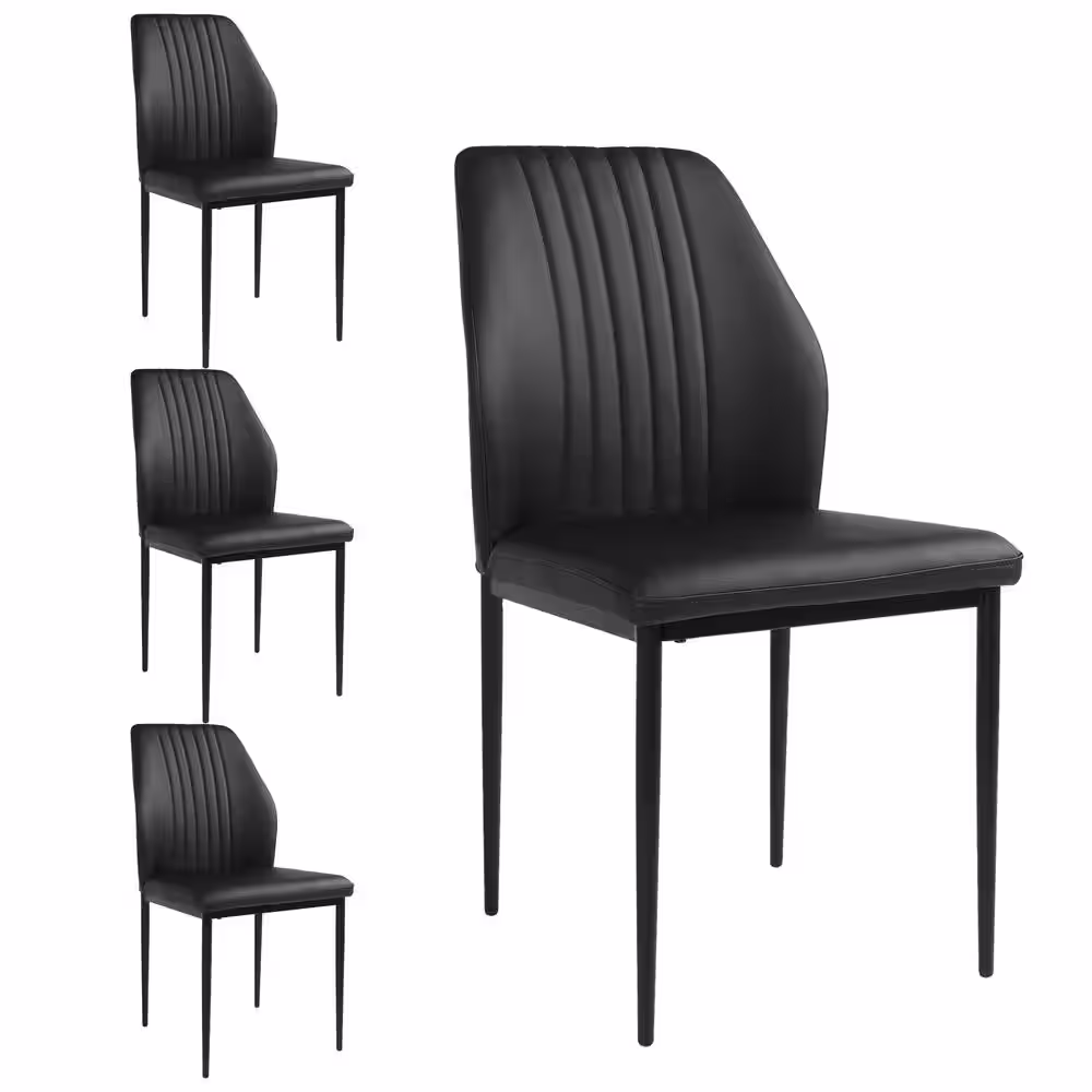 GOJANE Black Faux Leather Solid Back Dining Side Chair with Stable Steel Legs, Set of 4