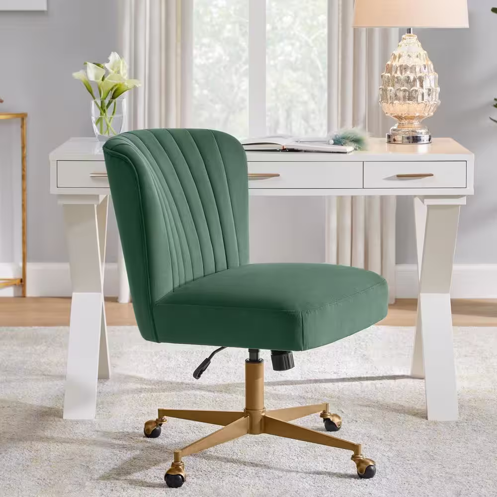 Home Decorators Collection Azria Verdite Green Velvet Office Chair with Brass Wheeled Base