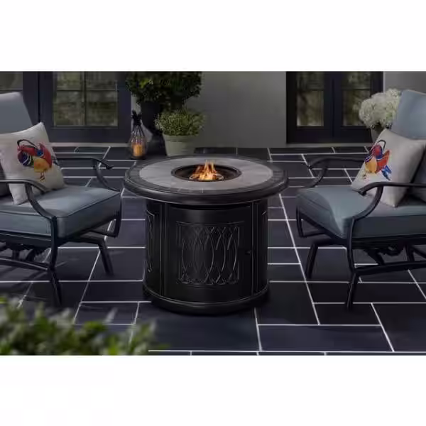 Home Decorators Collection Wilshire Estates 1-Piece Aluminum Tile Top Outdoor Gas Firepit with Sunbrella Sling Fabric