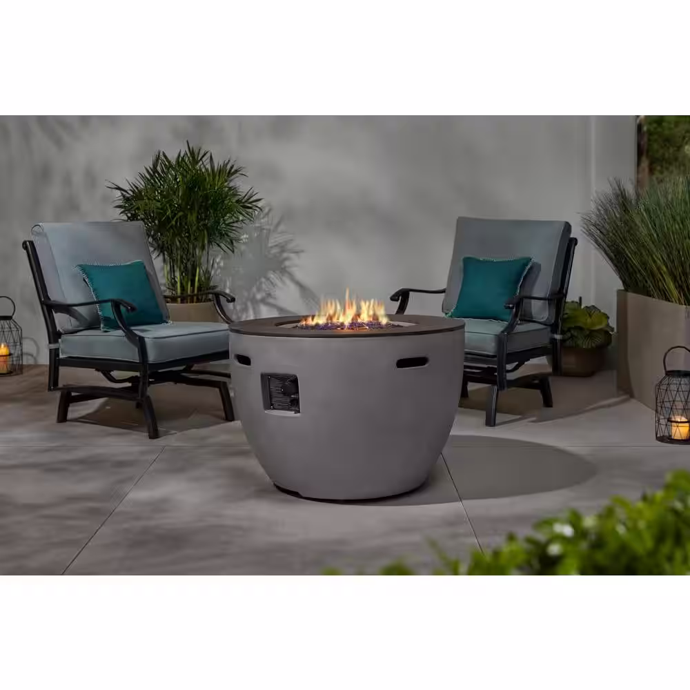 Home Decorators Collection 35.2 in. W x 24 in. H Round Concrete Finish Fire Table with Sintered Stone Tabletop