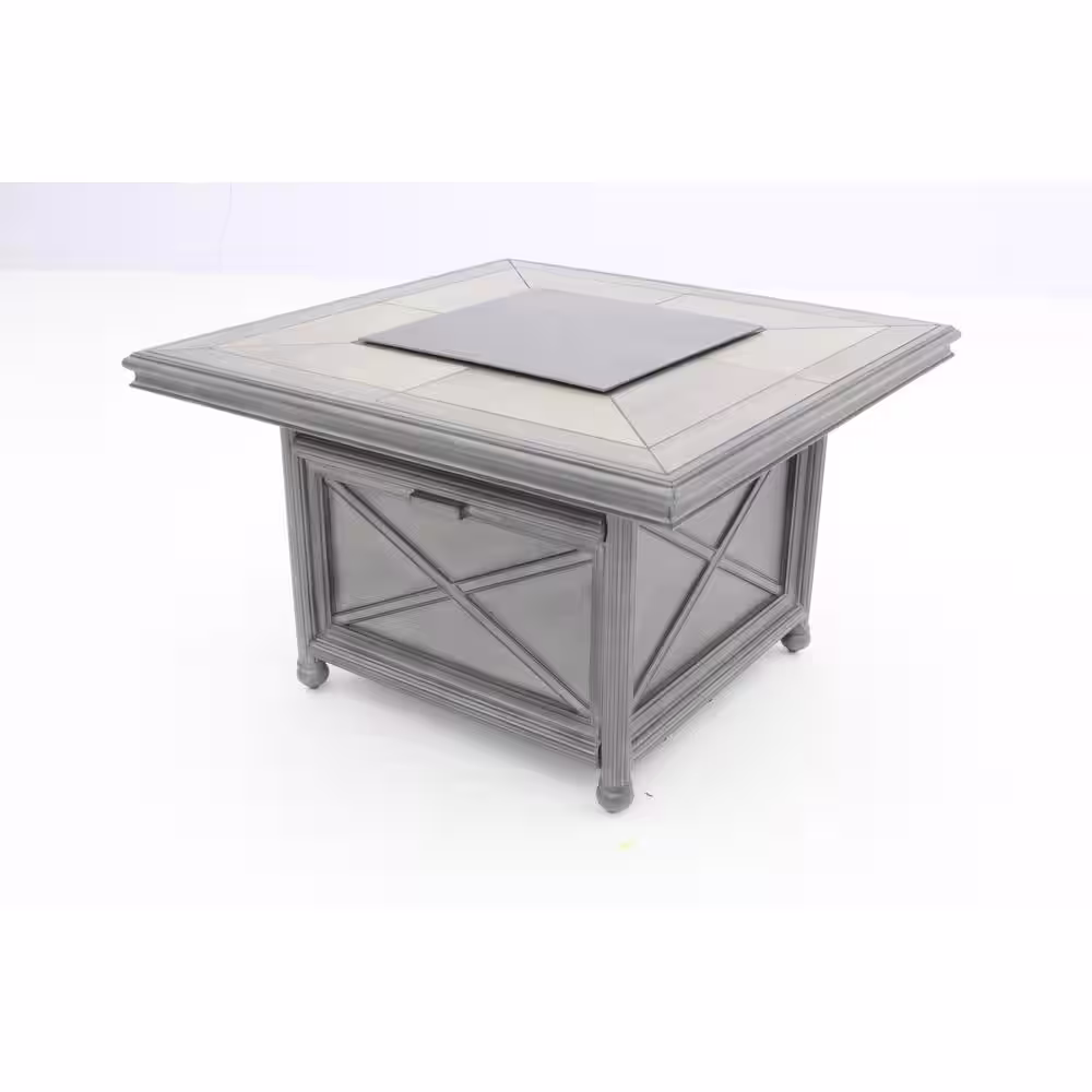 Home Decorators Collection Anaheim 49 in. x 25 in. Aluminum and Stainless Steel Tan Gas Fire Pit with Concrete-Look Tile Top