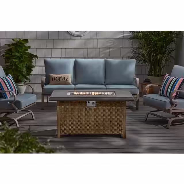 Home Decorators Collection Summerfield 39.5 in. 25 in. Square Steel Brown Wood Look Top LP Gas Fire Pit