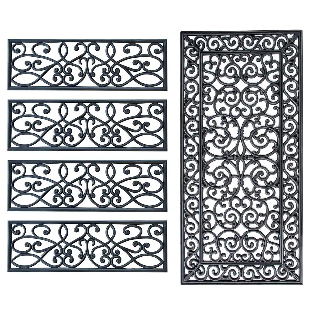 AmeriHome Decorative Scrollwork Indoor/Outdoor Entryway Rubber Door Mat Set with Stair Tread Cover (5-Piece Set)