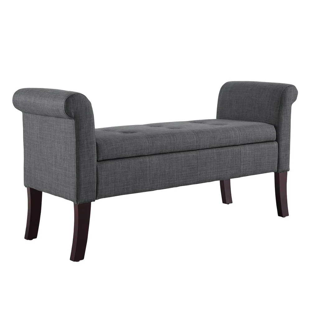 Linon Home Decor Erie Charcoal Storage Bench with Dark Espresso Legs