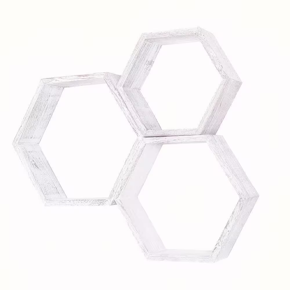 None Hexagon Floating Shelves Wall Mounted, Honeycomb Wood Shelf Storage Farmhouse Home Decor (Set of 3)