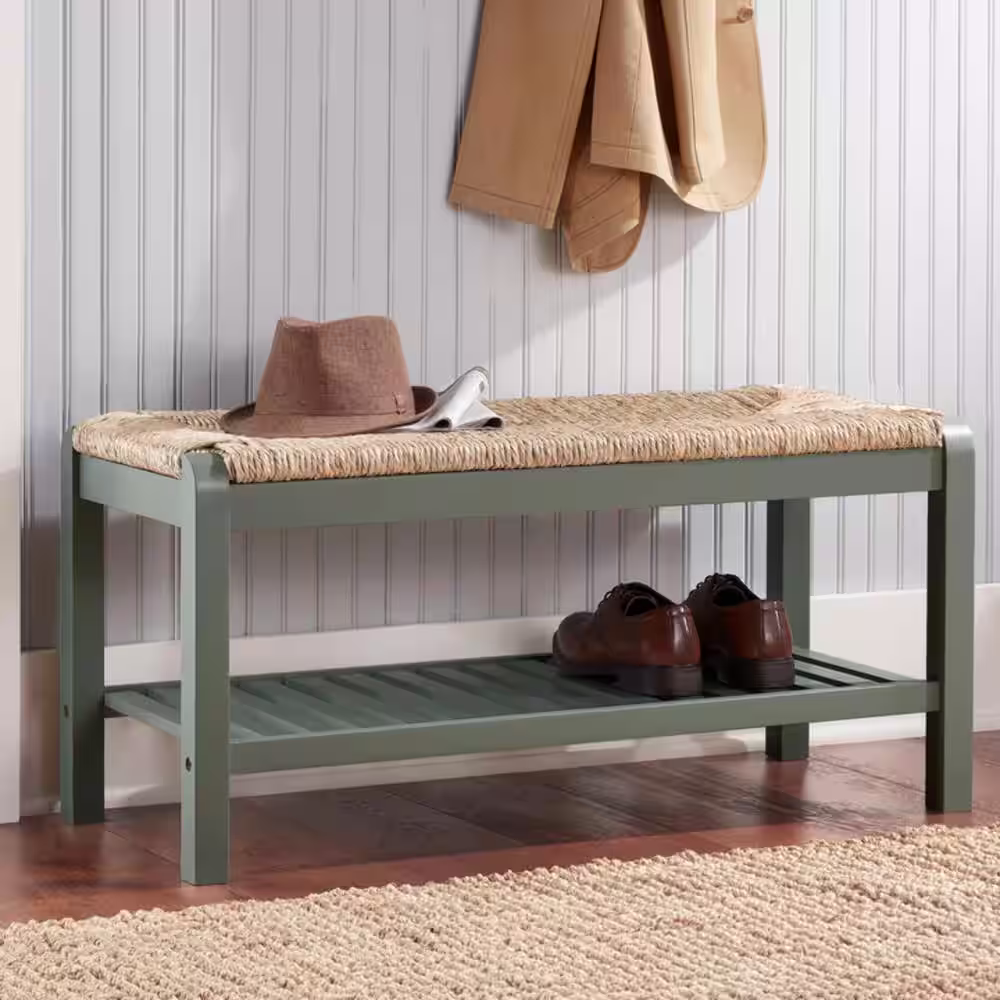 Home Decorators Collection Dorsey Willow Green Wood Entryway Bench with Rush Seat (37.99 in. W x 17.72 in. H)