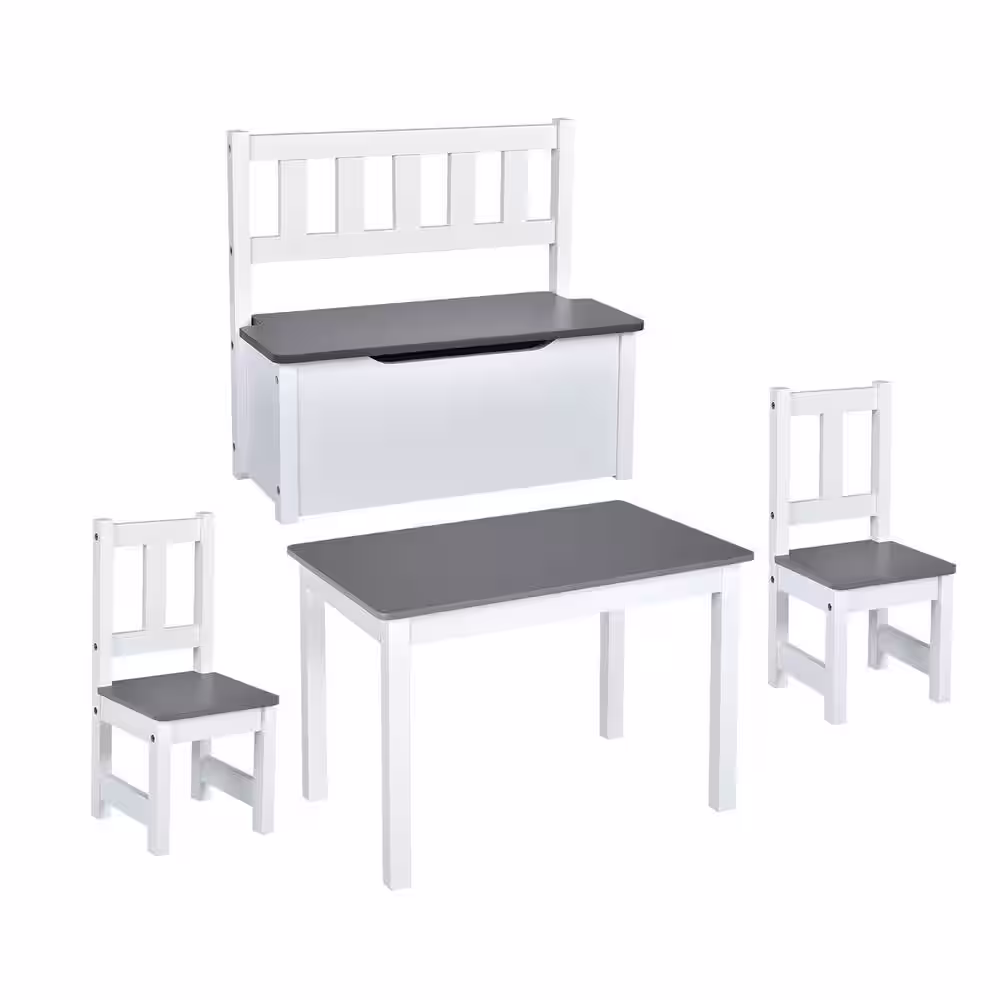 Costway 4PCS Rectangle Kids Wood Top Gray Activity Table and Chairs Set with Storage Bench Study Desk