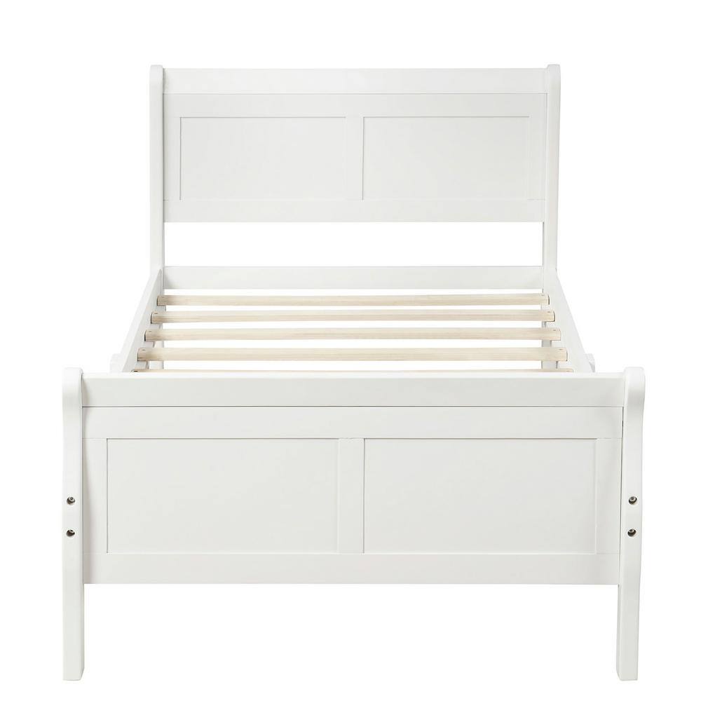 None White Twin Size Solid Wood Platform Bed with Headboard and Footboard, Kid Platform Sleigh Bed Frame with Wood Slat