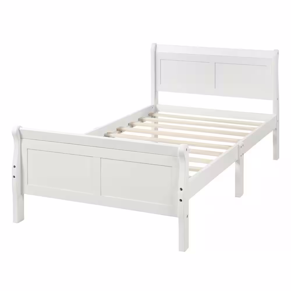 None White Twin Size Platform Bed Frame, Twin Wood Bed Frame with Headboard and Footboard for Bedroom Kids, Girls, boys