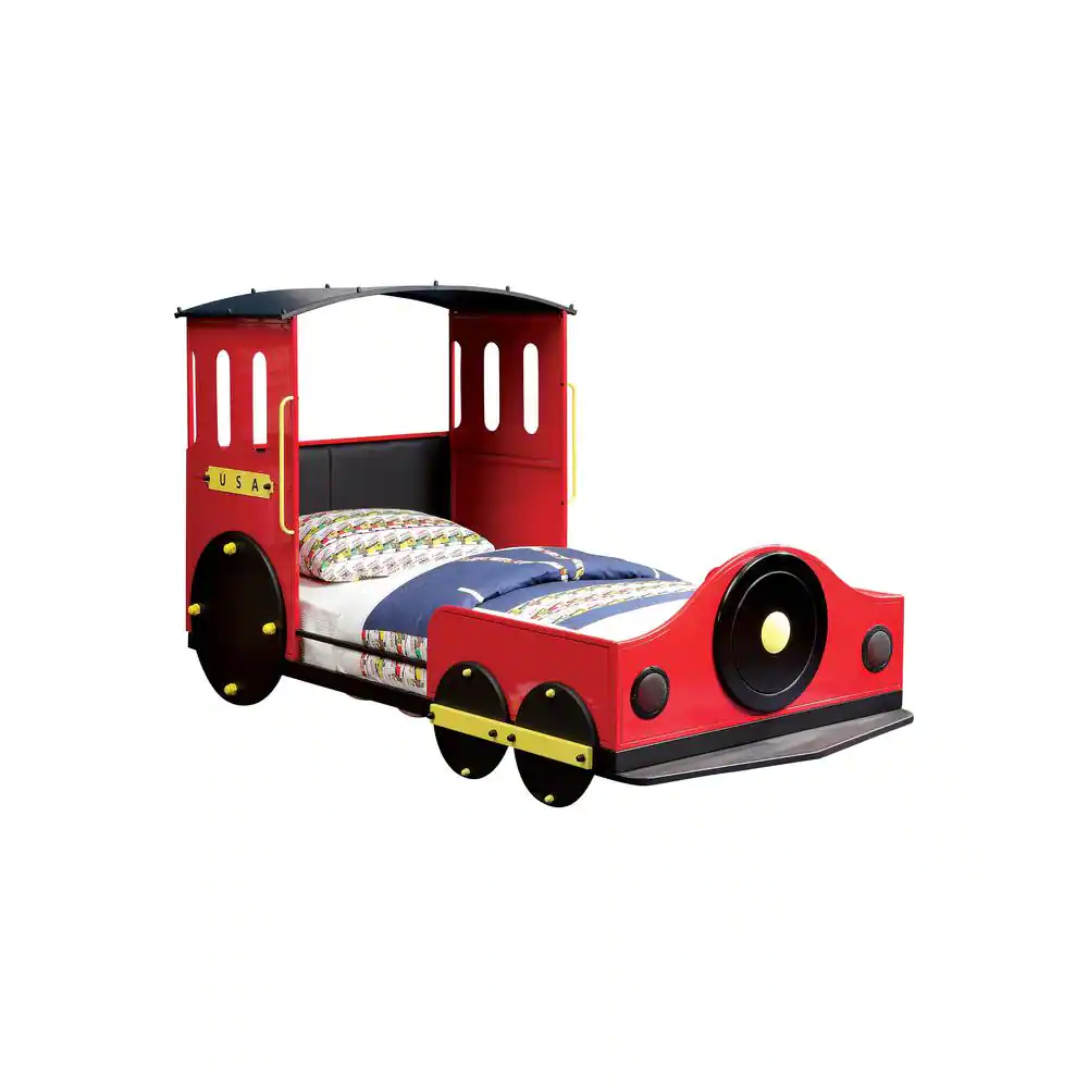 Furniture of America Ash Meadow Red and Black Steel Train Twin Bed