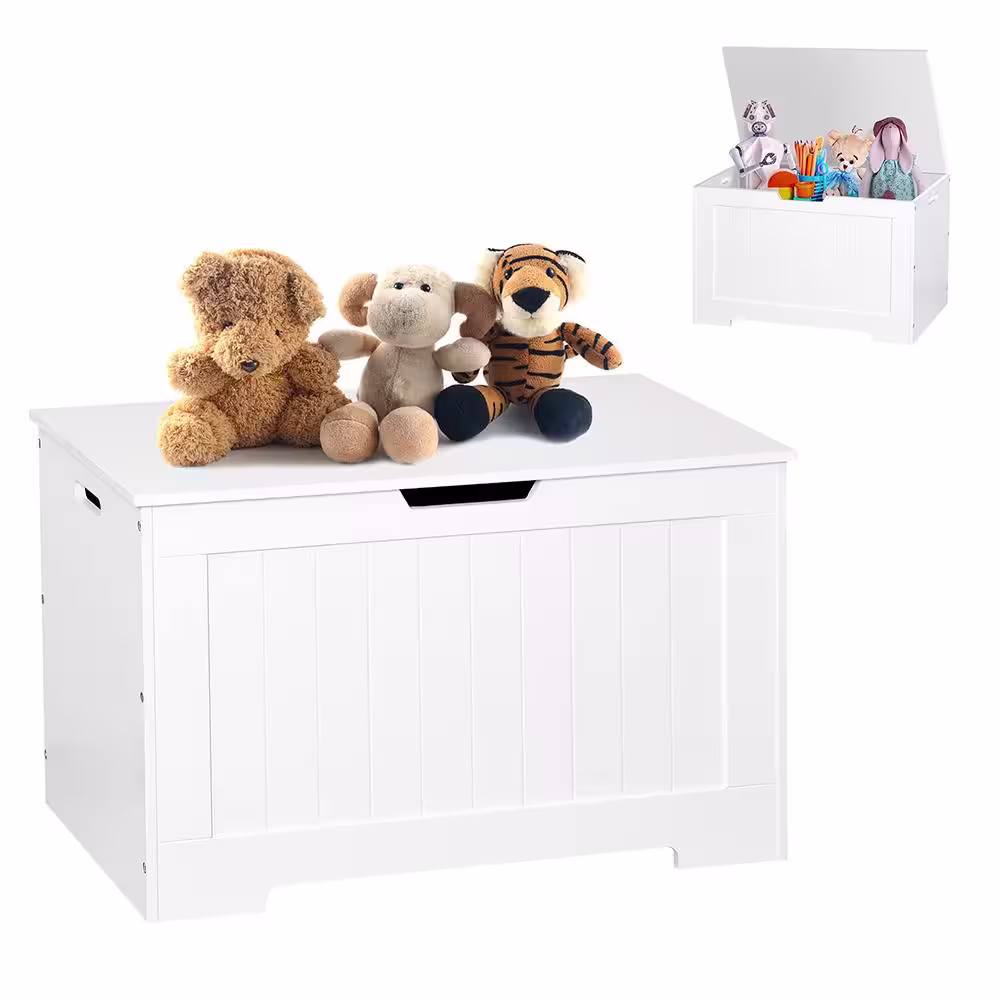 YOFE White Wooden Lift Top Storage/Box Organizer/Kid's Toy Chest with 2 Safety Hinge, Bench for Bedroom/Entryway/Living Room