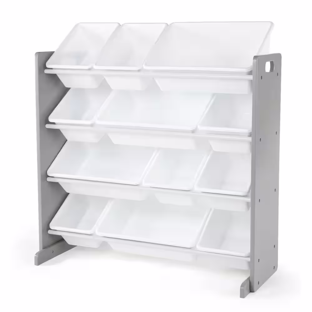 Humble Crew Inspire Collection Grey/White Kids Wood Toy Storage Organizer with 12-Plastic Bins