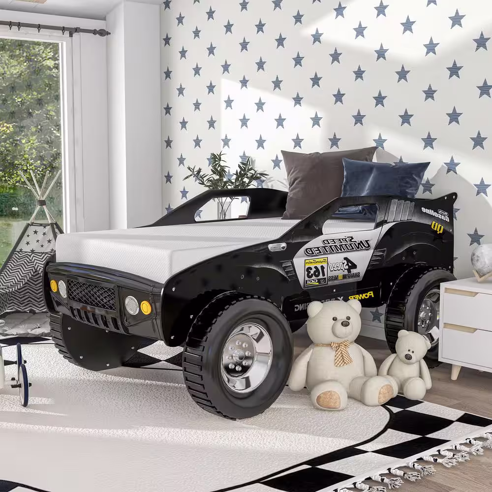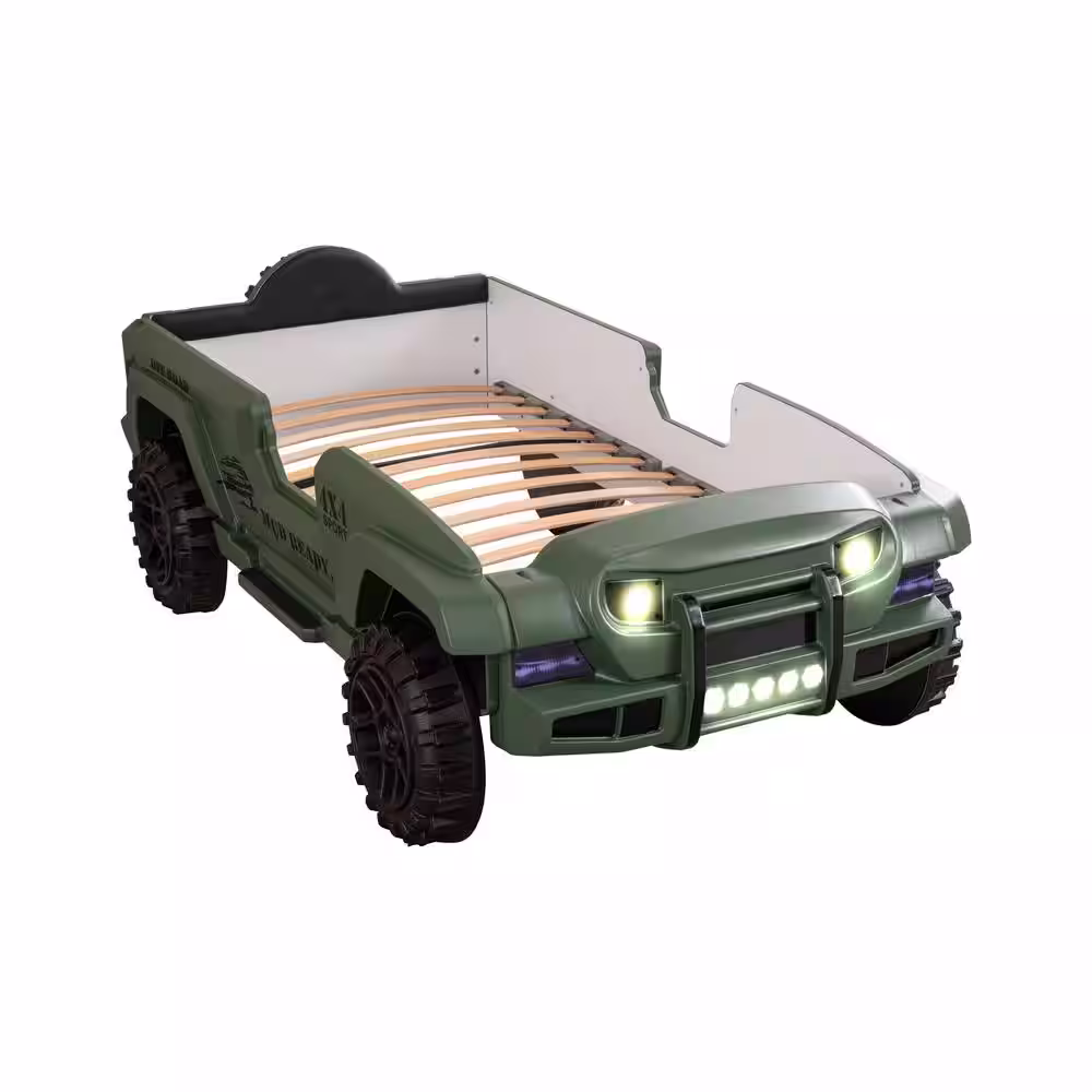 None Kaylo Green Twin Novelty 4x4 Offroad Car Platform Bed With LED Lights