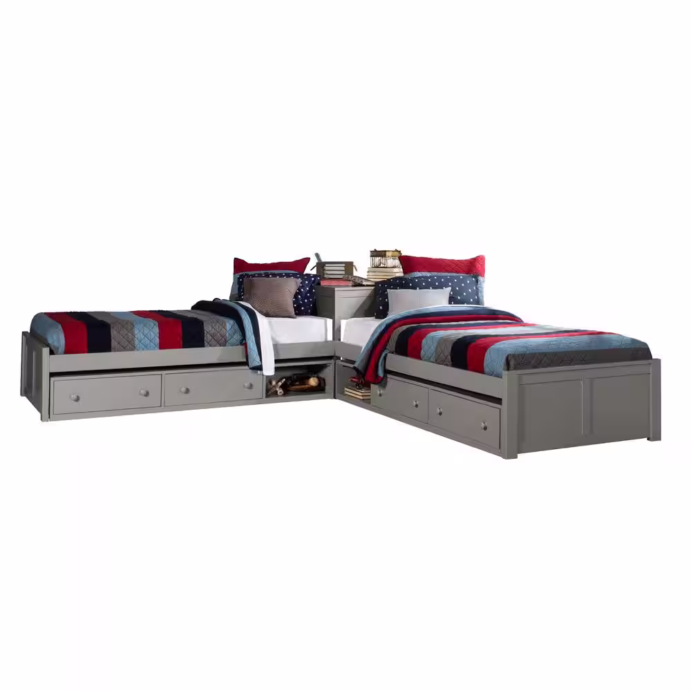 Hillsdale Furniture Pulse Gray Twin L-Shaped Bed with Double Storage