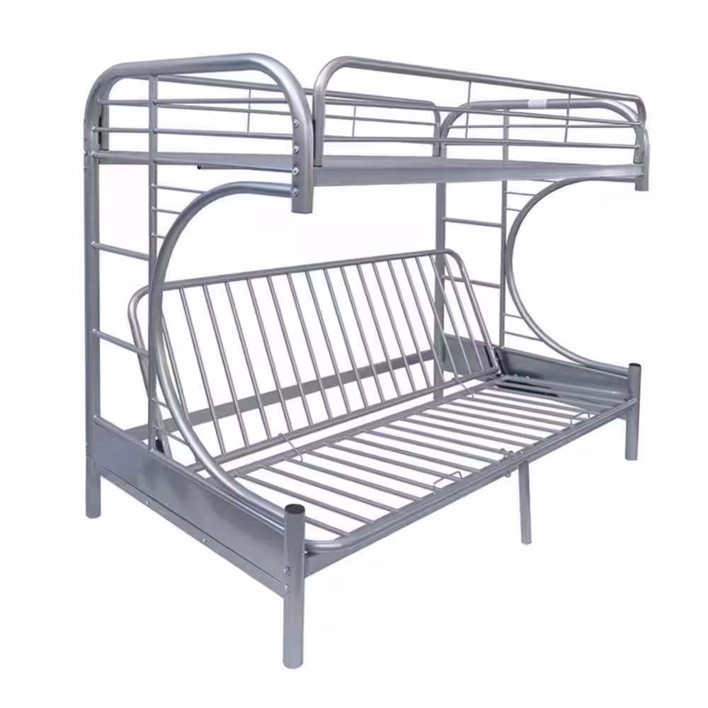 Benjara Eclipse Silver Twin Xl Over Queen Futon Metal Bunk Bed with Guardrails