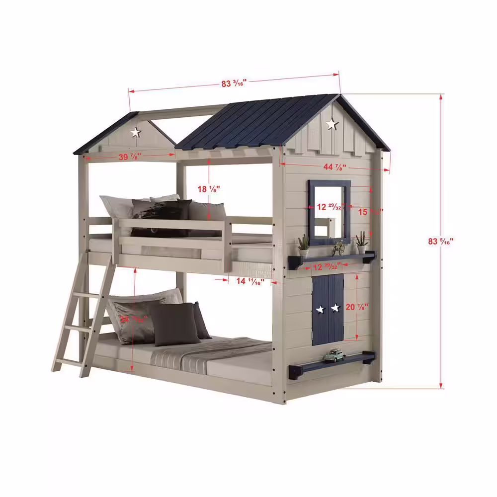Donco Kids Grey Star Gaze Bunk Bed with Blue Tent Kit