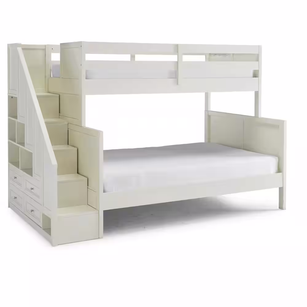 HOMESTYLES Naples Off White Twin Over Full Bunk Bed with Steps